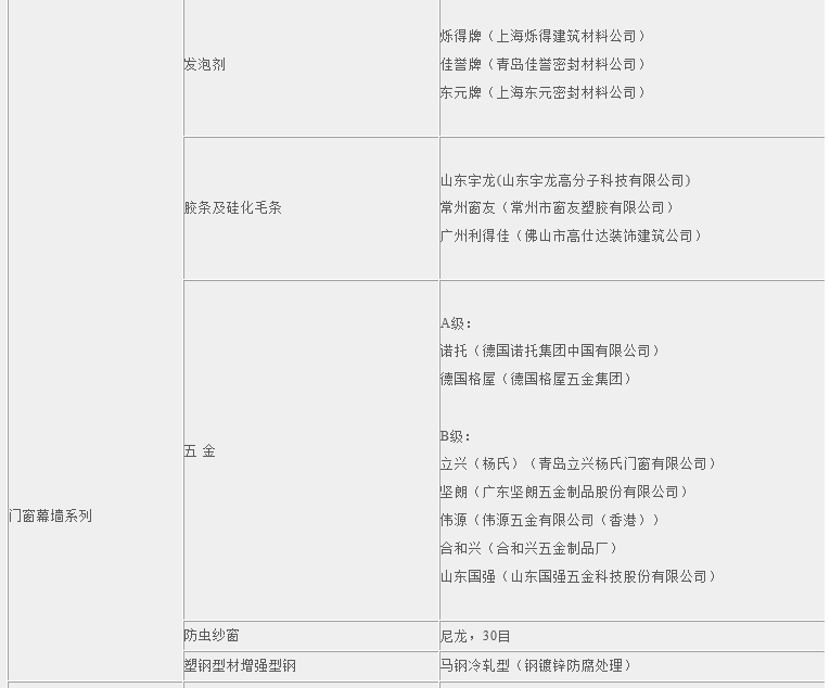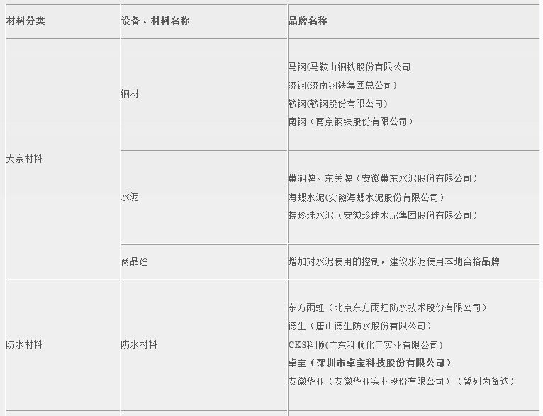 安徽皖投置業(yè)有限責(zé)任公司設(shè)備、材料品牌庫(kù)